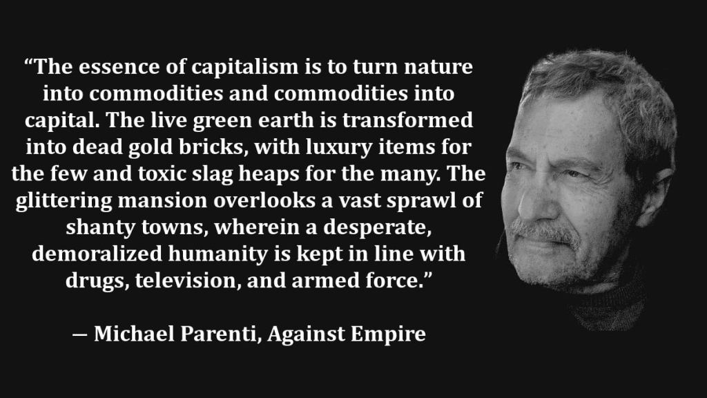 Before you purchase anything, it goes from producer to distributor to retailer. The process throughout is dependent on a score of support mechanisms; transport, labour, materials, factory, storage, marketing etc. Each of these support services borrows to finance their operation; bank interest is loaded. By the time you take it home 40 percent of what you pay goes to the banks in interest repayments through that chain.