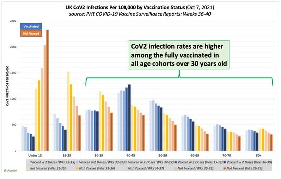 An Epidemic of the Vaccinated: Latest UK Data Shows Rate of Infection Among jabbed Exceeds Un-jabbed in Every Age Group Over 30. The latest numbers from the UK reveal the covid infection rates among the vaccinated now exceed the unjabbed in every age group over 30.