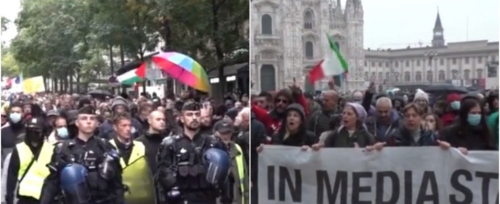 In Italy, the rules are even stricter, with QR codes required for employees in the public and private sectors to access their workplaces. A huge crowd gathered outside the iconic Milan Cathedral on Saturday to protest. Demonstrators with Italian flags and cardboard crosses called the requirement for a health pass ’discrimination.’