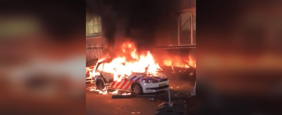 At least two people were wounded by police gunfire in the Dutch city of Rotterdam after a protest over government repression spiralled into a violent riot, seeing demonstrators torch a squad car and clash with officers.