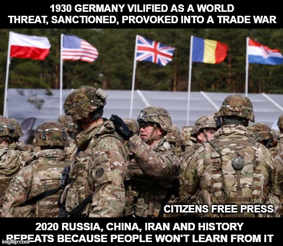 What we see now is an action replay of the lead-up to war with the sorely provoked and villified German Reich in the late 1930s. ‘History will judge the Press generally to have been the principal cause of war. Of all Germans, Hitler is the most moderate as far as Danzig and the Corridor are concerned,’ conceded Prime Minister, Neville Chamberlain (16 August 1939).