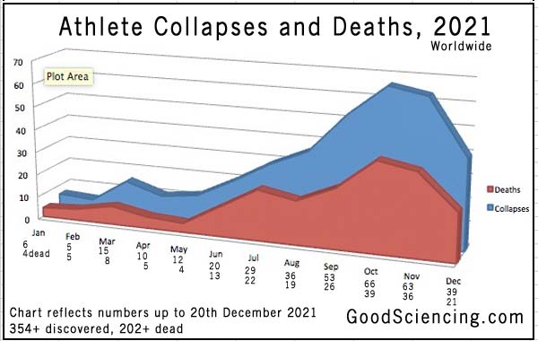 So in response to their pronouncement, here is a non-exhaustive and continuously growing list of mainly young athletes who had major medical issues in 2021 after receiving one or more COVID vaccines. Initially, many of these were not reported. We know that many people were told not to tell anyone about their adverse reactions and the media was not reporting them. They started happening after the first COVID vaccinations. The mainstream media still are not reporting most, but sports news cannot ignore the fact that soccer players and other stars collapse in the middle of a game due to a heart attack. Many of those die – more than 50%.