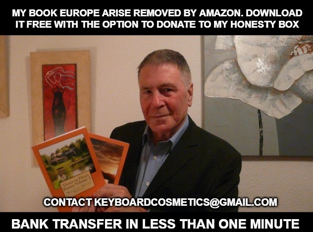 Inspired to raise my banned Europe Arise from the funeral ashes, I decided to offer the Light-Man’s Survival Manual as a free download and to invite financial support to replace Amazon’s (meagre) royalties. In this way, I could continue to support myself as a writer. EUREKA! Within 24-hours I received a donation from Mr Pirie in Britain.