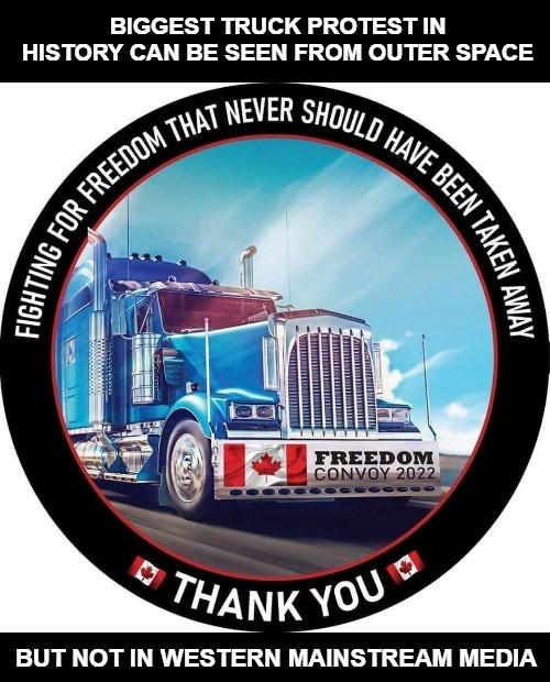 Whilst it is known that the number of truckers taking part has already exceeded 100,000. The mainstream is playing down the numbers and citing 50,000 which was reached days ago. Waiting to greet the greatest truckers protest in history are 500,000 Canadian citizens preparing to welcome the relief columns of trucker convoys as liberators from the hell of the Trudeau regime.