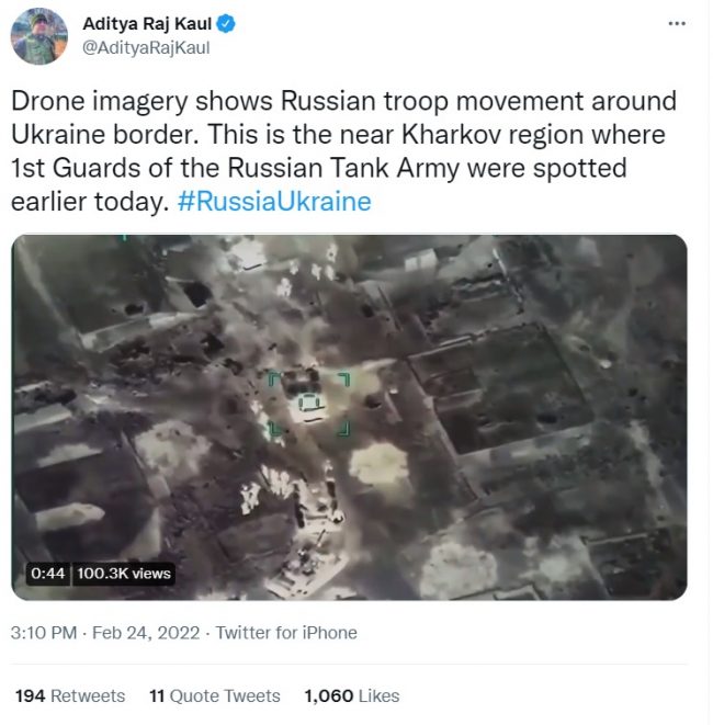 The problem with that is it’s not Kiev, it’s Moscow. And it’s not today, it’s two years ago. It’s footage of what is likely a rehearsal for the 2020 Victory Day Parade flyover.