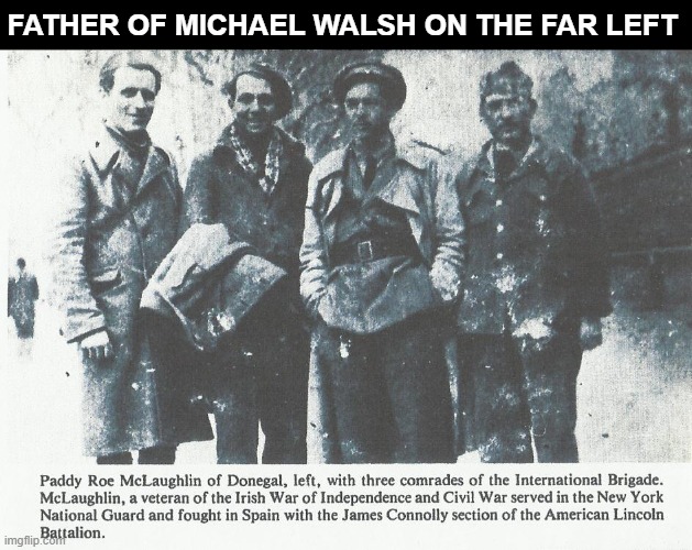 Michael Walsh’s father, Patrick, was born in Donegal in 1902. At 18 years of age, Patrick then a member of a fugitive IRA brigade, had a reward placed on his head by the British Army.
