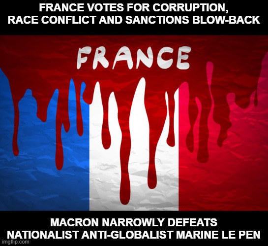 For the third French presidential election in a row, Marine Le Pen lost to a candidate of Jewish banking interests, with the electorate choosing globalism and multiculturalism over French identity. For father and daughter, the Le Pens have lost eight French presidential elections. It seems conclusive that a French patriot who stands for France and represents French ethnic nationalism cannot be elected in France.