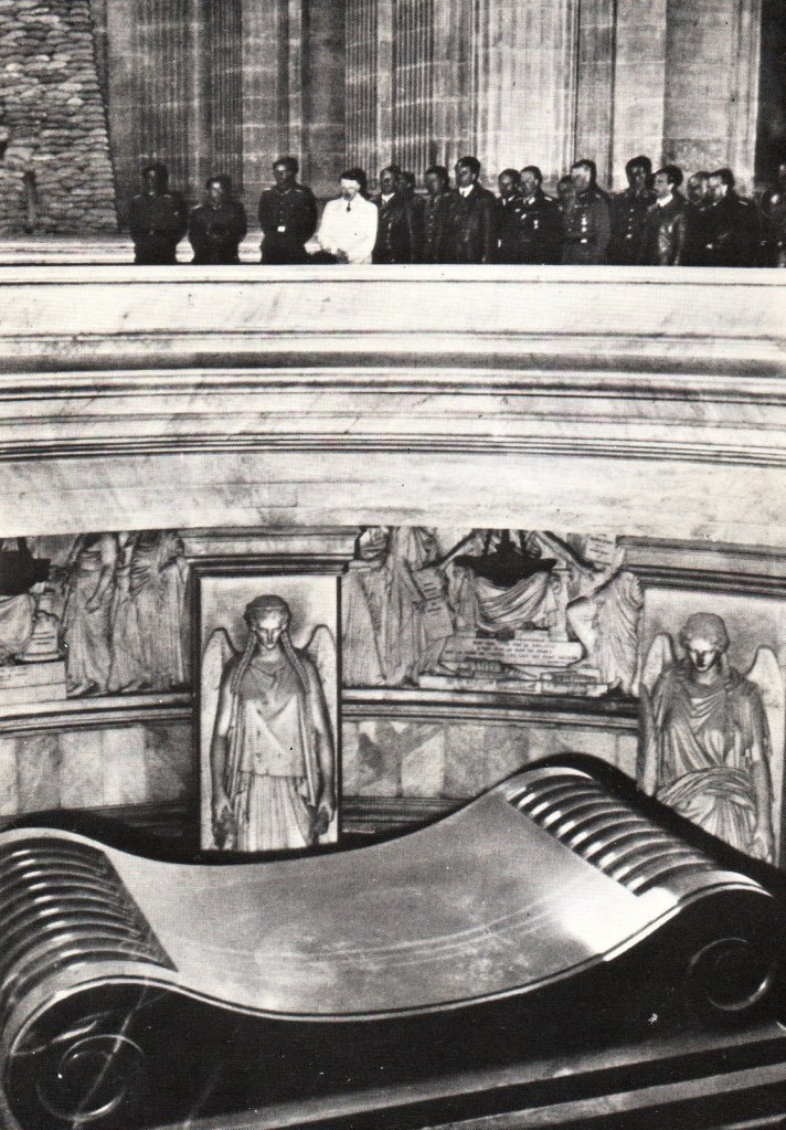 Upon the surrender of Paris, the German leader who, at the time, many described as the leader of the free world, forbade the triumphant playing of the Paris Entry March. During his visit to The City of Light, the German Leader paid homage to the Napoleonic Tomb. The two great leaders did however part company when it came to personal aggrandizement.