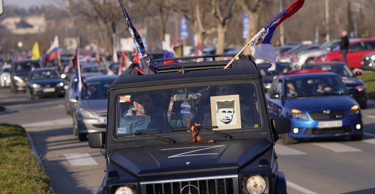 Later, several hundred cars gathered on the Fühlinger See and gradually dispersed in the middle of the day. Many had flags of Russia on their hoods, and the companions of some drivers waved flags from their windows.