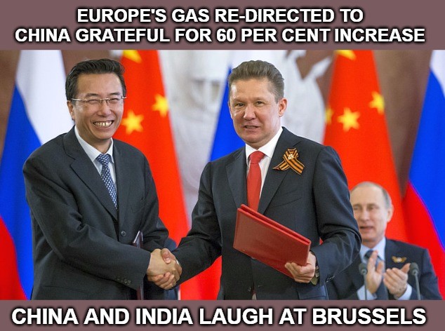 Indian refined oil-product exports, beefed up by cheap Russian supplies, have grown sharply since the beginning of the war. Daily shipments to Europe have risen by a third and by 43% to the U.S. on a quarterly basis. We are truly the suckers of the world. Source