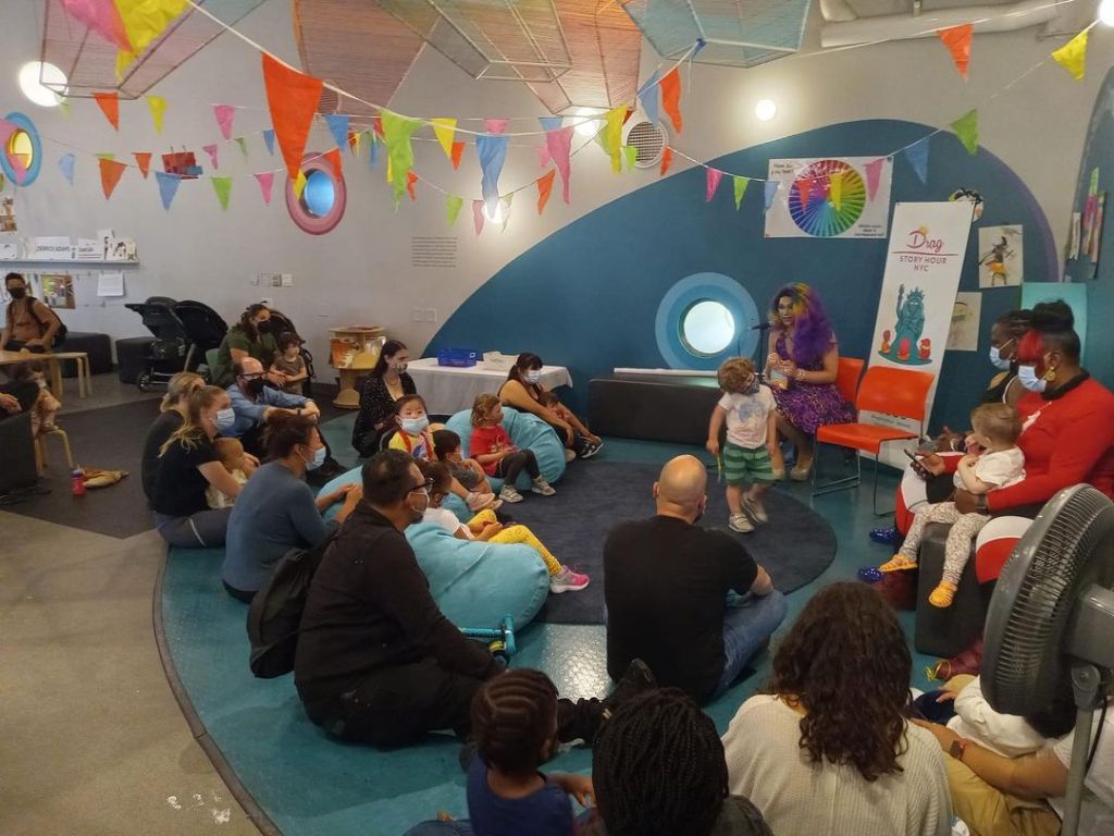 Drag Story Hour NYC shows are described by New York Public Libraries as ‘inclusive, gender-affirming programs,’ in which bizarrely dressed biological males men in women’s clothes give children a sample of ‘LGBTQ reads … with lots of songs and glitter along the way.’ The group has put on shows at public libraries in the city since 2017.