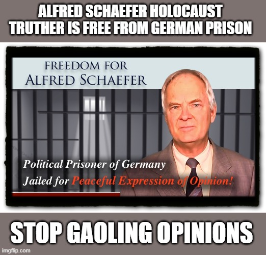 Alfred has been incarcerated and cruelly treated for four long years….. simply for denying the victor nations’ version of the so-called holocaust which has proved to be fake history.
