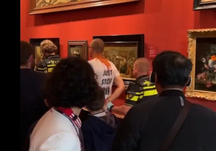 After their success at the BAFTAs, the JSO members moved on to other events and venues. They started criminal attacks on gas stations, car dealerships, oil infrastructure facilities all over Britain. They disrupted or attempted to disrupt several football matches and the British Formula One Grand Prix. Media did the cheerleading inasmuch as the activists received far less aggressive coverage than other protest groups. But this spring and summer, JSO participants had a special passion for works of art.