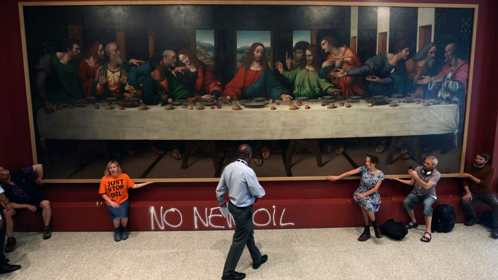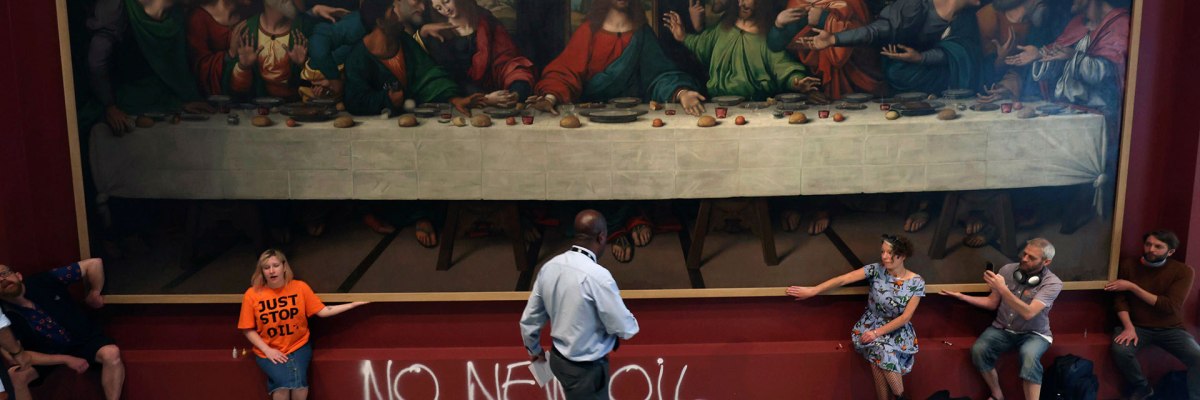 Activists have glued themselves to masterpieces by Leonardo da Vinci and John Constable and doused Vincent van Gogh’s tomato soup. True, they did it in a sparing mode for masterpieces.