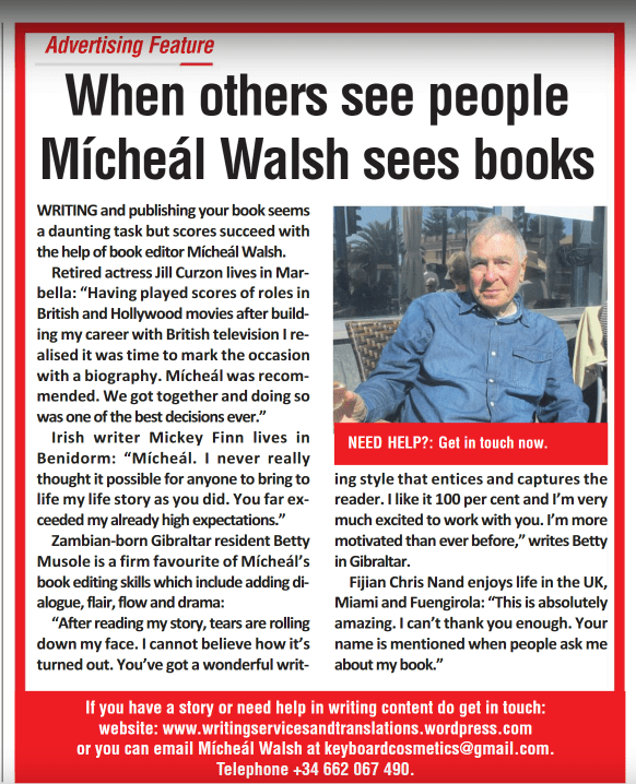 Michael Walsh has been helping writers for many years. Praise for his work echo through the years. His clients include novices of many nationalities. Few of his clients are skilled writers which is why they contact Britain and Ireland’s most successful multi-topic book author.