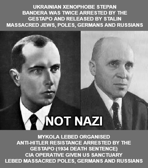 The Banderas, described as ‘Nazis’ were in fact responsible for collaboration with the Bolsheviks. During their terror campaigns, the Banderas slaughtered ethnic Russians, Germans, Poles and non-active Jews. The Banderas were rounded up and arrested by the armies of the Reich.