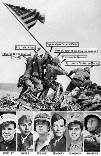 One of America’s most celebrated military images is that of the six servicemen who participated in the raising of Old Glory, the Stars and Strips atop Mount Suribachi during the storming of Iwo Jima.