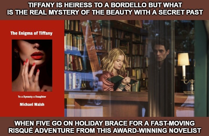 THE ENIGMA OF TIFFANY Michael Walsh Award-Winning Writer. The elegant and glamorous Tiffany is a rich widow with a shady and shocking past when she meets Gareth, Leonara and Felicity holidaying on the Spanish Riviera. But who is Tiffany and Pegasus her gay partner? A romantic comedy with an ending that has you reaching for your Kleenex. A reader writes, ‘I thoroughly enjoyed it.’ There is girl talk, excitement, revelations, dilemmas, compromises, romance, and at times pathos.