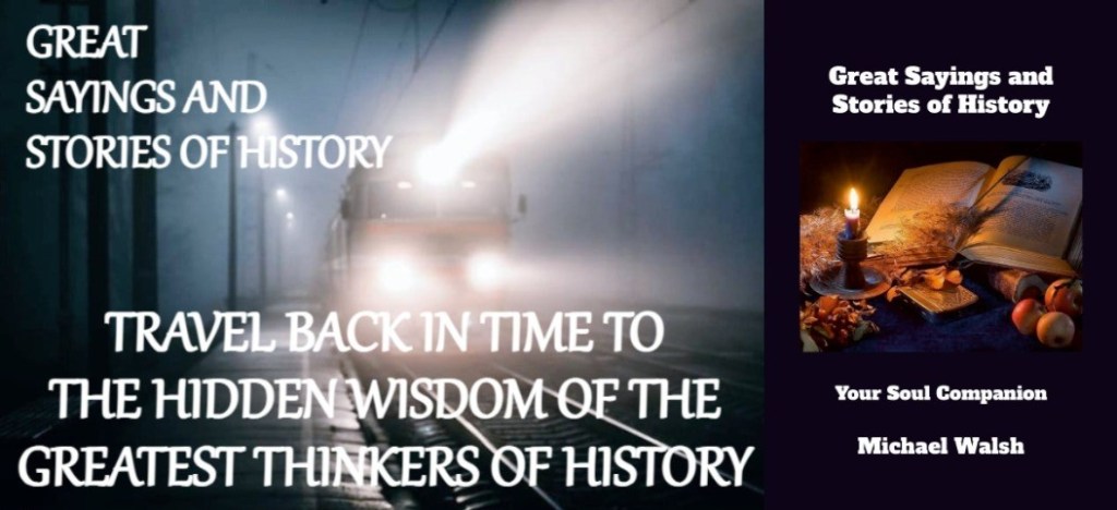 GREAT SAYINGS OF HISTORY Michael Walsh Compilation. A quiet room in a rustic cottage overlooking a pastoral scene who would you choose as your soul companion? Be inspired by hundreds of wise comments uttered by history’s greatest thinkers. LINK TO BOOK https://tinyurl.com/9js5xtz5