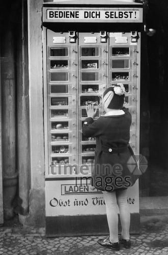 With shops often closing early in the evening, such machines provided a practical solution for those who needed to make purchases after work, symbolizing a growing trend towards convenience in urban life.