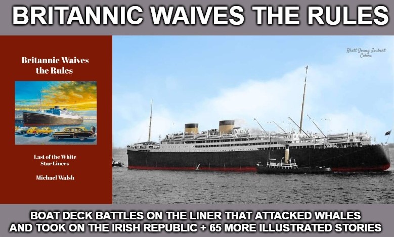 BRITANNIC WAIVES THE RULES The Last White Star Liner (1845-1960) by Michael Walsh, a regular television, radio and newspaper personality. In 68 lavishly illustrated stories the company’s last deckboy vividly recalls shipboard life. The liner’s colourful characters and jaw-dropping incidents both on board and in New York’s notorious Hell’s Kitchen. A unique collector’s item. LINK TO BOOK https://tinyurl.com/42zns8n2