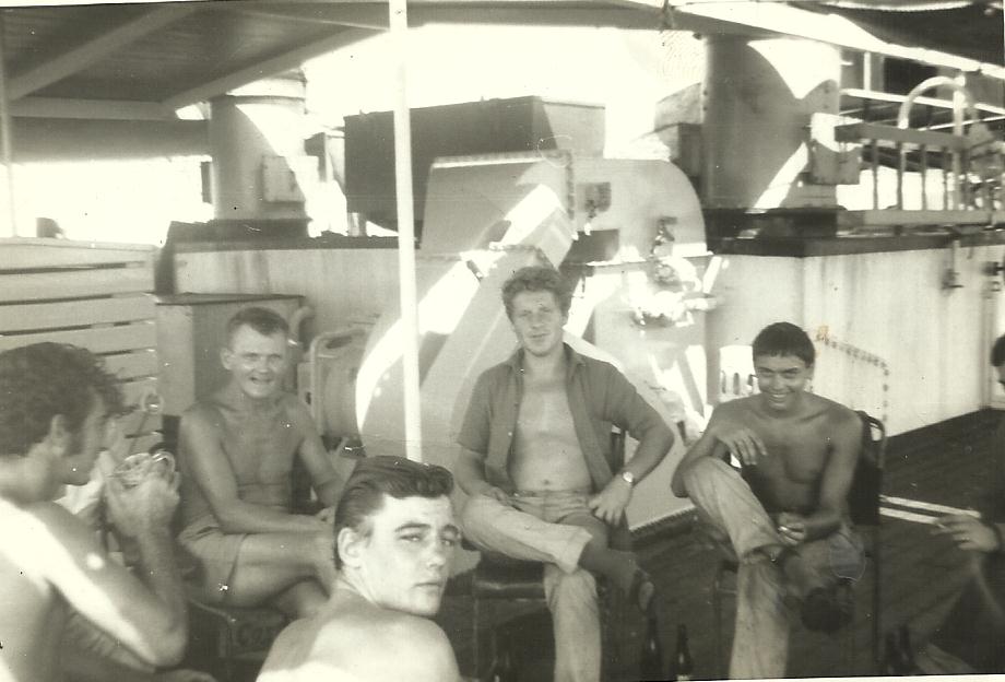 MV KING ARTHUR. Several British and Belgian deckies enjoy a break.