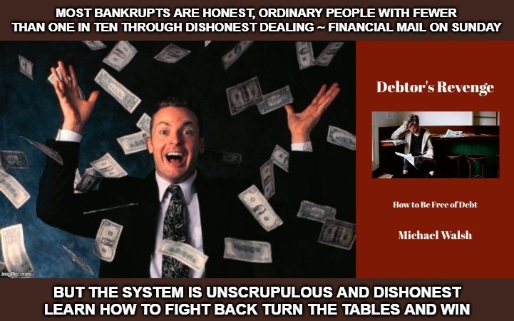 DEBTOR’S REVENGE Michael Walsh the man who turned the tables. The ultimate easy-to-use guide shows you how to write off your debts including your mortgage, keep your job and family and possessions and make a debt-free fresh start. Suitable for UK buyers. LULU and Amazon. CLICK LINK. https://www.lulu.com/account/projects/57v76mn