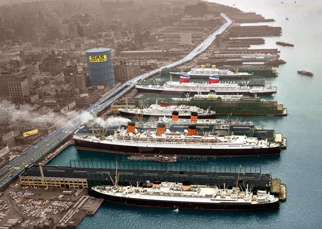 Known as Luxury Liner Row, the piers hosted six iconic Atlantic liners, marking the end of the summer vacation season just after Labor Day. These vessels symbolized the golden era of ocean travel, arriving together in a rare and spectacular assembly.