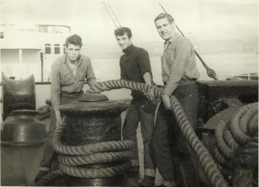 Author Editor Michael Walsh (Left) tackles a mooring rope on the foredeck of the MV Britannic.