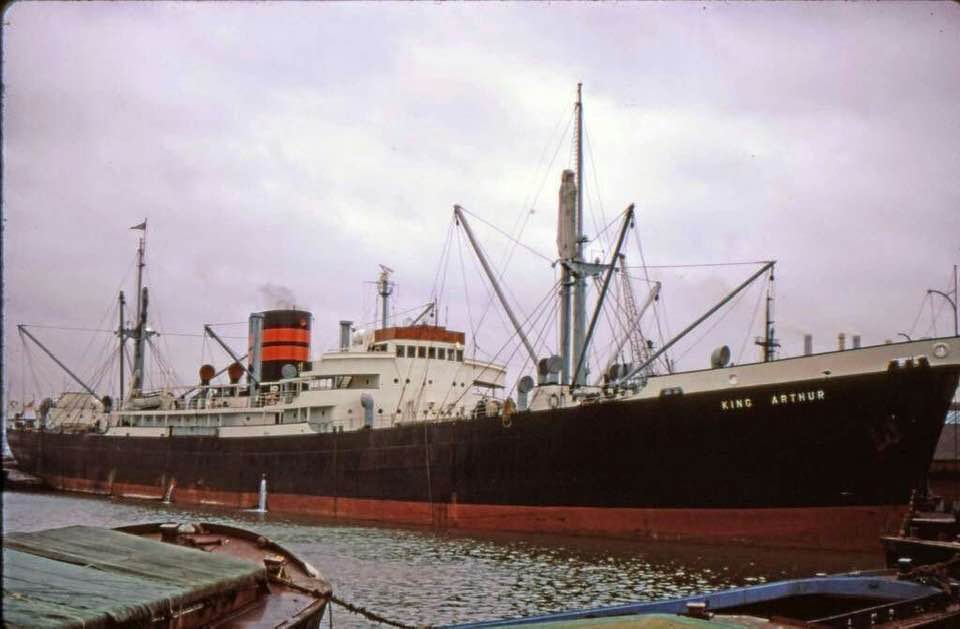 After being holed during a failed dash through the notorious Devil’s Cauldron on the River Congo the King Liner (Clan Line) freighter MV King Arthur struggled under its own steam to a remote wharf at a kraal known as Boma.