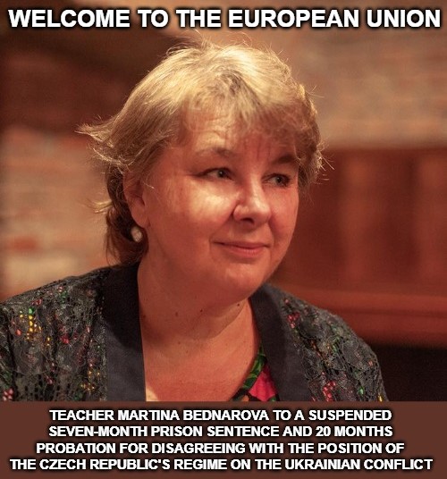 Martina Bednarova has been given a suspended jail term in the European Union member state, the Czech Republic, for calling Moscow’s military action ‘justified’.
