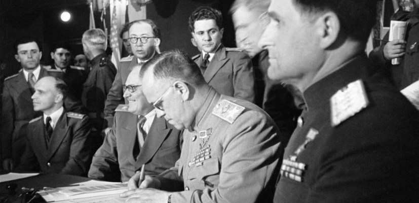 Almost a year before the end of military operations in Europe, the Allies approved the text of the act of unconditional surrender of the Workers ’ State.