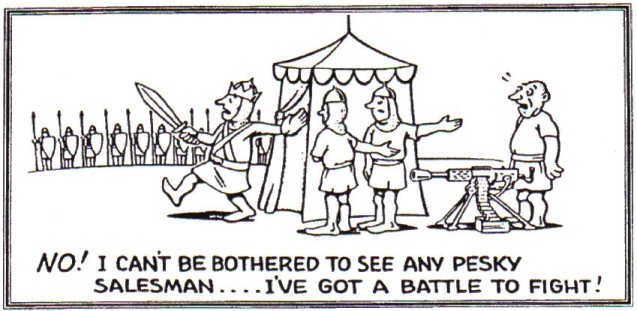 A favourite cartoon depicts a sales rep trying to grab the attention of a medieval king directing a battle in which arrows are being exchanged. The salesman has on offer a Gatling machine gun and boxes of ammunition. A short burst would be a game-changer. Alas, the king is too busy to see him.