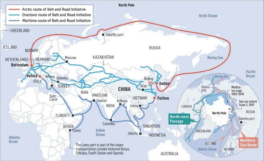 China is investing in infrastructure: ports, navigation, and even joint projects with Russia.