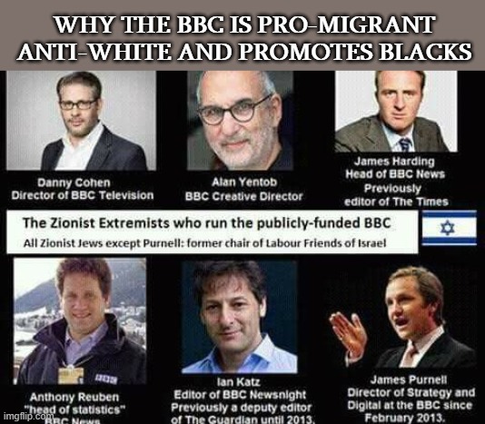 The BBC is supposed to be ‘independent’. A close study of its inner workings reveals its controlling figures and methods of indoctrination. As of August 2014, it is nothing more than yet another Jewish Supremacist-controlled propaganda outlet.