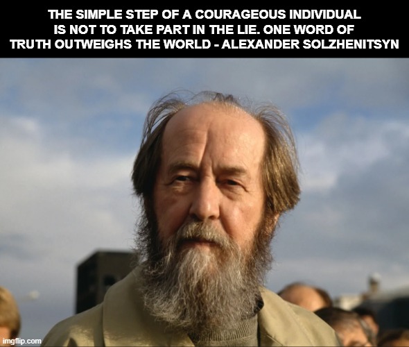 In his acceptance of the Nobel Prize for Literature in 1970, Solzhenitsyn quoted a Russian proverb that accurately summarizes his creed: