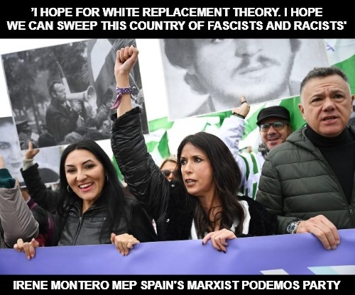 MEP Irene Montero, whose Podemos party governs with Sanchez’ socialists, went a step further. ’I hope for ‘replacement theory’,’ she told a crowd of supporters last month.