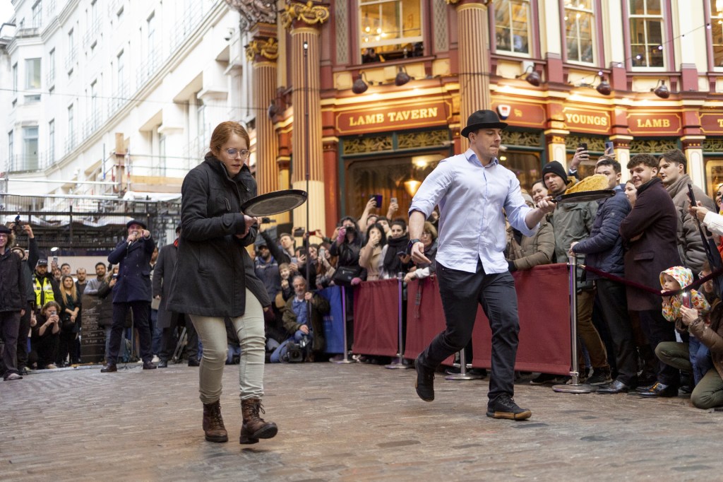 To commemorate this event, race participants wear aprons and caps, holding frying pans filled with pancakes. The goal is to flip the pancake three times without damaging it.