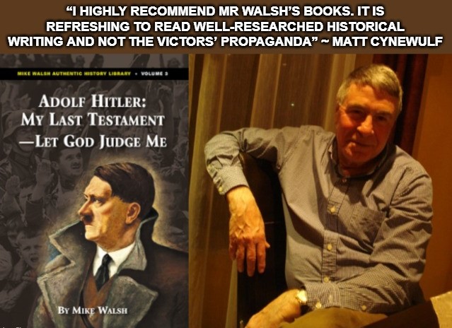 MY LAST TESTAMENT. LET GOD JUDGE ME. Mike Walsh. Forbidden History: This is the first time this best-seller has been published. Adolf Hitler who took on Satan and his disciples describes his struggle for victory over the Capitalist-Communist hydra. Adolf Hitler also explains his downfall. Illustrated. Softcover. 195 pages. https://barnesreview.org/product/adolf-hitler-my-last-testament-let-god-judge-me/