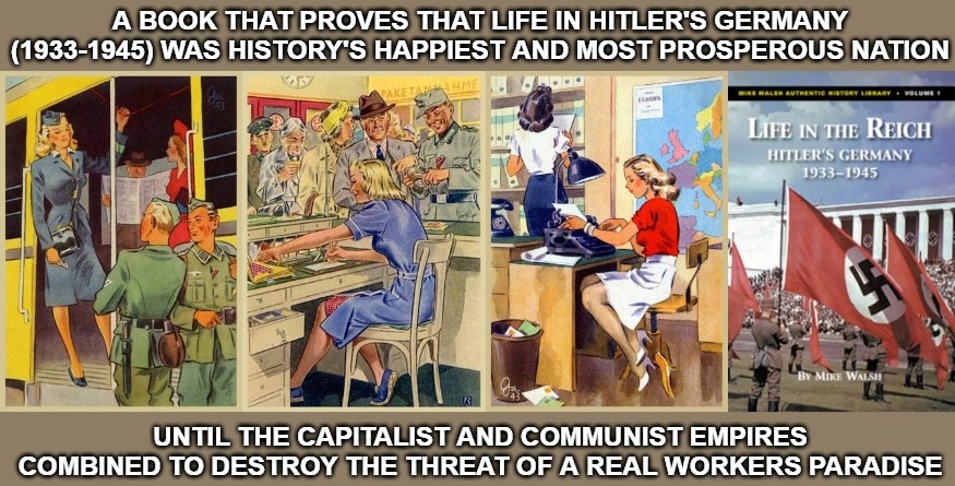 LIFE IN THE REICH Mike Walsh: FORBIDDEN HISTORY: The standard of living in Hitler’s Third Reich was high. It was higher than that of the developed world. German workers enjoyed a lifestyle comparable to that of movie stars. Germany led the world in fashion, medicine, cinema, lifestyle, manufacturing, transport infrastructure, public facilities, cutting-edge science, healthcare and education. Amazon removed Life in the Reich. The book dared to show Hitler’s Germany as it was. It did not follow what the propagandists would have us believe. A real eye-opener: https://barnesreview.org/product/life-in-the-reich-hitlers-germany-1933-1945/
