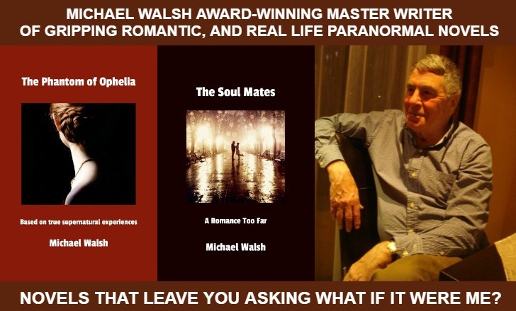 Award-winning novelist Michael Walsh writes romantic, real-life paranormal novels THE PHANTOM OF OPHELIA and SOUL MATES. Best read with an open mind. https://michaelwalshbooks.wordpress.com/