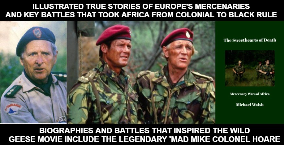 Participants in the Congo Crisis and African conflicts also include Black Jack Schramme, Colonel Bob Denard, and Major Siegfried Müller. French Legionnaire Roger Faulques and ex-Hitler Youth Rolf Rolf Steiner. Updated and fully illustrated 28 stories of legends. https://www.lulu.com/shop/michael-walsh/the-sweethearts-of-death/paperback/product-95628g9.html?page=1&pageSize=4