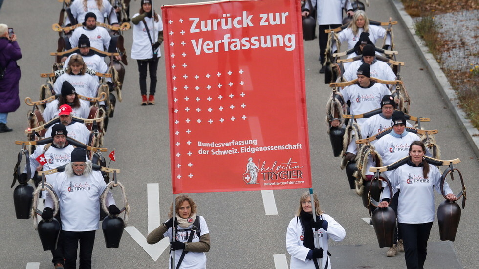 Thousands (media says ‘a group’) of angry Swiss citizens people carrying torches and bearing Swiss flags filed through a town in Switzerland’s Zurich region, rejecting the regime’s determination to introduce the notorious and highly sinister Covid health passes.