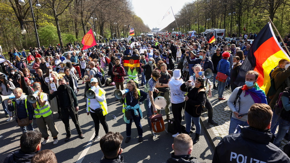Demonstrators gathered in the tens of thousands in the capital of Occupied Germany as the nation’s ruling caste debates whether to give Angela Merkel’s regime more authority to impose lockdowns on areas they claim to have high Covid-19 infections.